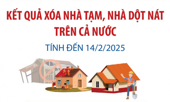 Theo Bộ Lao động - Thương binh và Xã hội, tính đến 14/2/2025, các tỉnh, thành phố trên cả nước đã hỗ trợ xóa nhà tạm, nhà dột nát được 106.189 căn, tăng 5.552 căn so với thời điểm ngày 7/2/2025.