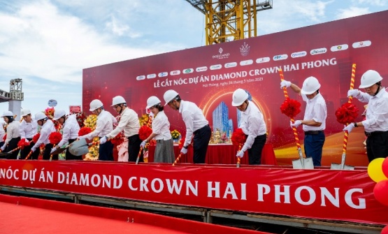 Ngày 28/5, Công ty Đầu tư Bất động sản DOJILAND tổ chức lễ cất nóc dự án Diamond Crown Hai Phong – công trình được mệnh danh là biểu tượng mới về kiến trúc, phong cách sống của Hải Phòng.
